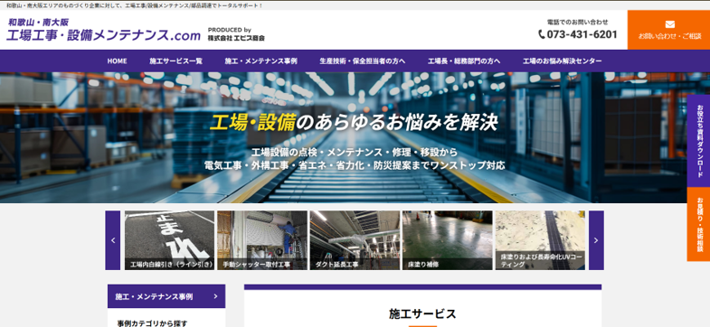 エビス商会では、この度、従来から運用しておりました「工場メンテナンス・省エネ工事. COM」を